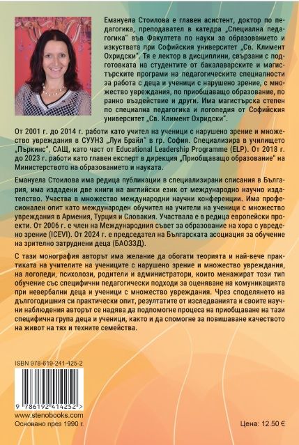 С тази монография авторът има желание да обогати теорията и най-вече практиката на учителите на учениците с нарушено зрение и множество увреждания